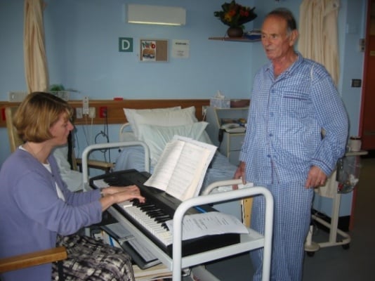 Since its inception in 1997, Music Therapy at Peter Mac has enhanced the hospital experience of countless patients, alleviating both physical and emotional pain. This World Music Therapy Day marks 25 years since the music therapy service was first introduced to cancer patients at Peter Mac back in 1997. Since then, registered music therapists have engaged patients in music experiences to help reduce sleeplessness, stress, anxiety, breathlessness and emotional pain. Patients affected by cancer also participate in music therapy sessions as a reflective exercise or to create a legacy gift for loved ones through song, instrumental or voice recordings. Senior Music Therapist, Hayley Miller, says the role of a music therapist is to “harness the power of music to address a patient’s specific needs.” “Music has an ability to stir emotions, to promote movement, to provide an escape, and to bring people together,” Ms Miller said. Children and young adults also benefit from music therapy as a way of reducing anxiety before and after treatment or a procedure. Peter Mac’s Paediatric, Adolescent and Young Adult Music Therapist, Stefanie Zappino, says that music offers younger patients a unique coping mechanism that has proven hugely effective when adjusting to the challenges of a cancer diagnosis. “I just love seeing the smiles on our youngest patients’ faces when they come into the hospital and are so excited to play music before treatment. It is a privilege to be the fun part of their day!” Ms Zappino said. Experienced Music Therapist and researcher, Associate Professor Clare O’Callaghan AM, was instrumental in establishing the music therapy service at Peter Mac alongside oncologist Professor John Zalcberg OAM. Associate Professor O’Callaghan reflects on the impact music therapists had on the hospital at the time: “Staff were mostly open, curious, and, upon witnessing the effect of music therapy on patients and families, very supportive. Many also reported that overhearing music therapy was personally supportive, and that music therapists enabled a more humane work environment, which could enhance patient care and teamwork.” Professor Zalcberg’s vision for establishing a music therapy practice at Peter Mac was captured in the Journal of the Society for Integrative Oncology in 2006: “In our day-to-day lives, could we imagine a world without music? Music - that primal force that gives forth expressions of love, anger, frustration, despair, and hope, and all while facilitating communication between people and between cultures, and providing solace and peace. How appropriate then that music be part of the treatment program for patients with life-threatening diseases such as cancer. More than any other discipline, those of us who have had the privilege of working with experienced music therapists have seen this force bring relief to so many whose existential suffering, in the midst of the chaos of a life-threatening illness, has eclipsed their soul. Music therapy, for better or worse, is now a quantitative as well as a qualitative science. These articles illustrate the role of music therapists, helping patients of all ages and their carers survive cancer treatment, assisting them to get on with life, or to contemplate its ending, with dignity and in peace.”