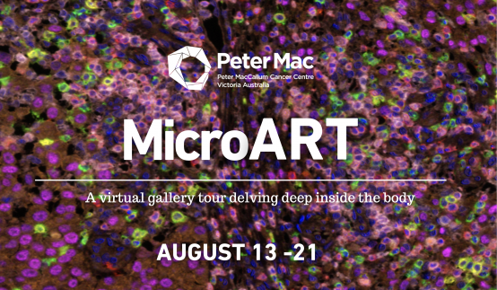 Hello! Welcome to Peter Mac's MicroART exhibition for National Science Week. We're so excited you're joining us and we can't wait to show you the secret world deep inside the body. When you're done viewing the gallery, please CLICK HERE TO VOTE FOR YOUR FAVOURITE ARTWORK so that we can crown a winner. Now sit back, relax and enjoy the stunning beauty of MicroART by entering the gallery below.