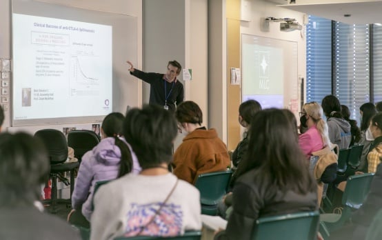 Peter Mac experts visited Methodist Ladies College last week, speaking to students about their work, Peter Mac, and the future of STEM. Nine Peter Mac speakers discussed their work and careers, four delivering keynote speeches. They joined colleagues from the Walter and Eliza Hall Institute (WEHI), the Doherty Institute, and the Alfred Hospital. Dr Elizabeth Christie, Group Leader in Peter Mac’s Cancer Evolution and Metastasis Program shared her career path and some of her research findings, explaining “I hoped to inspire young people who have an interest in science and medicine." "I also believe that you can’t be what you can’t see, and by participating I hoped to help change the stereotype of scientists being male.” “They were so engaged and asked the scientists some fantastic questions. There were some very keen students who really want to work in STEM, and their enthusiasm was infectious!” Fundamental researcher and immunologist Associate Professor Paul Beavis (pictured) spoke to students about developing novel therapies that activate the the immune system to treat cancer. Professor Grant McArthur, medical oncologist and Head of Peter Mac’s Molecular Oncology Laboratory spoke on the importance of understanding the detailed cellular and molecular mechanisms of human disease, which can lead to the development highly effective therapies with profound impact. Professor McArthur was enthusiastic about the opportunity, “It is very exciting for a grey haired and ageing Professor to interact with the up-and-coming STEM talent in our schools.” Peter Mac’s Biomedical Animator Dr Maja Divjak agreed, “I was thrilled to be invited to speak at this wonderful event. It was a great opportunity to showcase my alternative career in science, which visually represents cancer biology and treatments at the molecular level, using stunning 3D animation." "Students are generally unaware of the alternative careers available to science graduates: just because you studied science doesn’t mean you’ll end up at the bench!” Associate Professor Kaylene Simpson, Head of the Victorian Centre of Functional Genomics at Peter Mac, spoke on how functional genomics brings the genome to life. Professor McArthur underlined the importance of community engagement, adding, “Developing the next generation of experts in STEM is critical to continuing to improve the health of our community and delivering better outcomes for cancer patients.” The event was hosted by PRISM (People Really Into Science @ MLC), aims to promote a love and appreciation for science within the community. PRISM fosters scientific curiosity in girls who hope to enter the STEM fields.