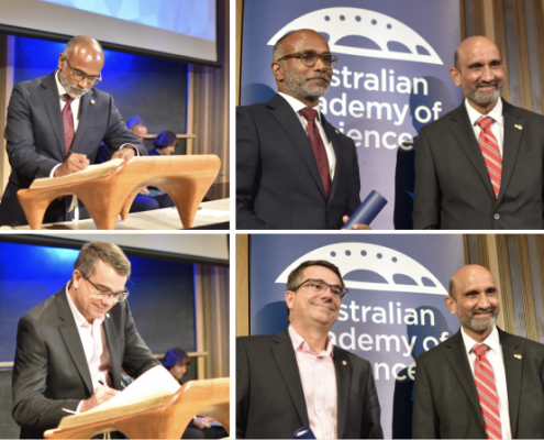 It was a glittering affair in Canberra this week as Prime Minister Anthony Albanese presented two of Peter Mac’s senior researchers with honours for their contributions to science and medicine. Professors Sherene Loi and Mark Dawson attended the ceremony in the nation’s capital on Tuesday night to accept their prestigious Life Scientist of the Year awards. Professor Loi was recognised in 2021 for her ground-breaking work in breast cancer, translating scientific findings into innovative treatments that can improve the survival patients around the world, and Professor Dawson’s award for his pioneering research in the field of epigenetics and its impact on human health and disease was announced in 2020. Announcement of the awards were made in 2020 and 2021 but the presentation was delayed due to COVID-19, culminating in a special event to honour three years of recipients this year. Professors Mark Dawson and Peter Mac’s Professor Andrew Roberts were also officially elected as a fellows of the Australian Academy of Science – the top honour for Australian researchers. They attended Canberra’s Shine Dome for the ceremony to sign the Royal Charter on Tuesday attended by the nation’s scientific elite. The Academy said Professor Dawson’s world leading research program “has provided several paradigm-shifting discoveries into epigenetic mechanisms of cancer stem cell maintenance, resistance to therapies and regulation of immune surveillance”. Professor Roberts was elected for leading the first-in-human trial of Venetoclax, before developing combination therapies and leading the first combination trials in leukaemia and lymphoma. Professor Dawson’s election was announced in 2021, the same year he was awarded the Academy’s prestigious Jacques Miller Medal, and Professor Roberts in 2020 – with the official signing delayed due to the pandemic. Read more about Professors Sherene Loi, Mark Dawson and Andrew Roberts.