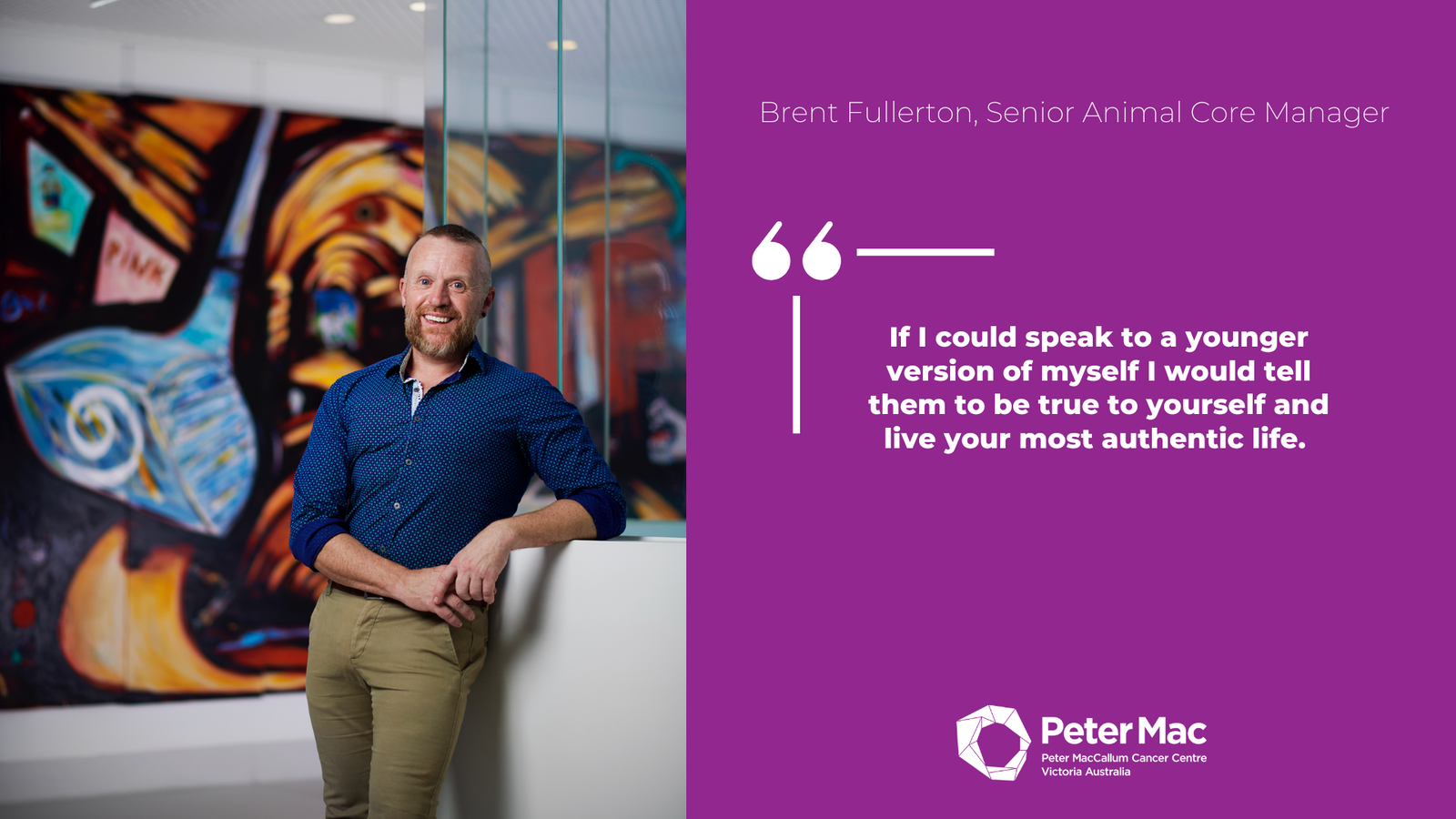 Brent Fullerton, Senior Animal Core ManagerIf I could speak to a younger version of myself I would tell them to be true to yourself and live your most authentic life.