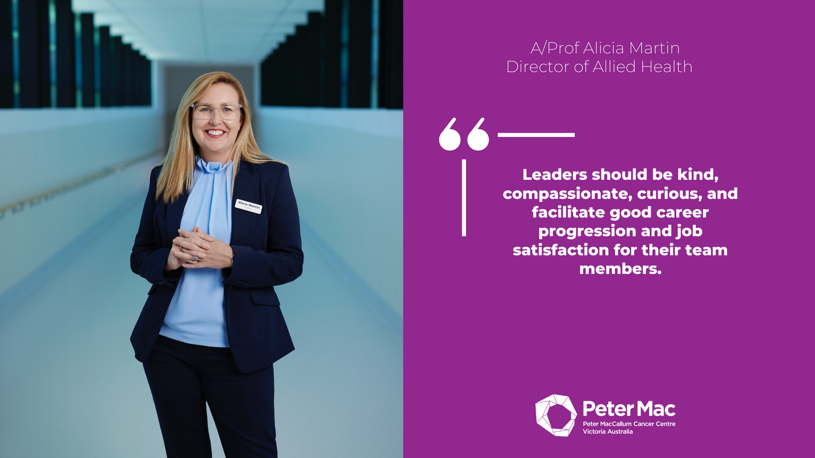A/Prof Alicia Martin, Director of Allied HealthLeaders should be kind, compassionate, curious, and facilitate good career progression and job satisfaction for their team members.