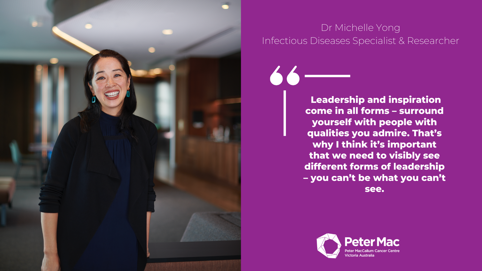 Dr Michelle Yong, Infectious Diseases Specialist & ResearcherLeadership and inspiration come in all forms – surround yourself with people with qualities you admire. That’s why I think it’s important that we need to visibly see different forms of leadership – you can’t be what you can’t see.