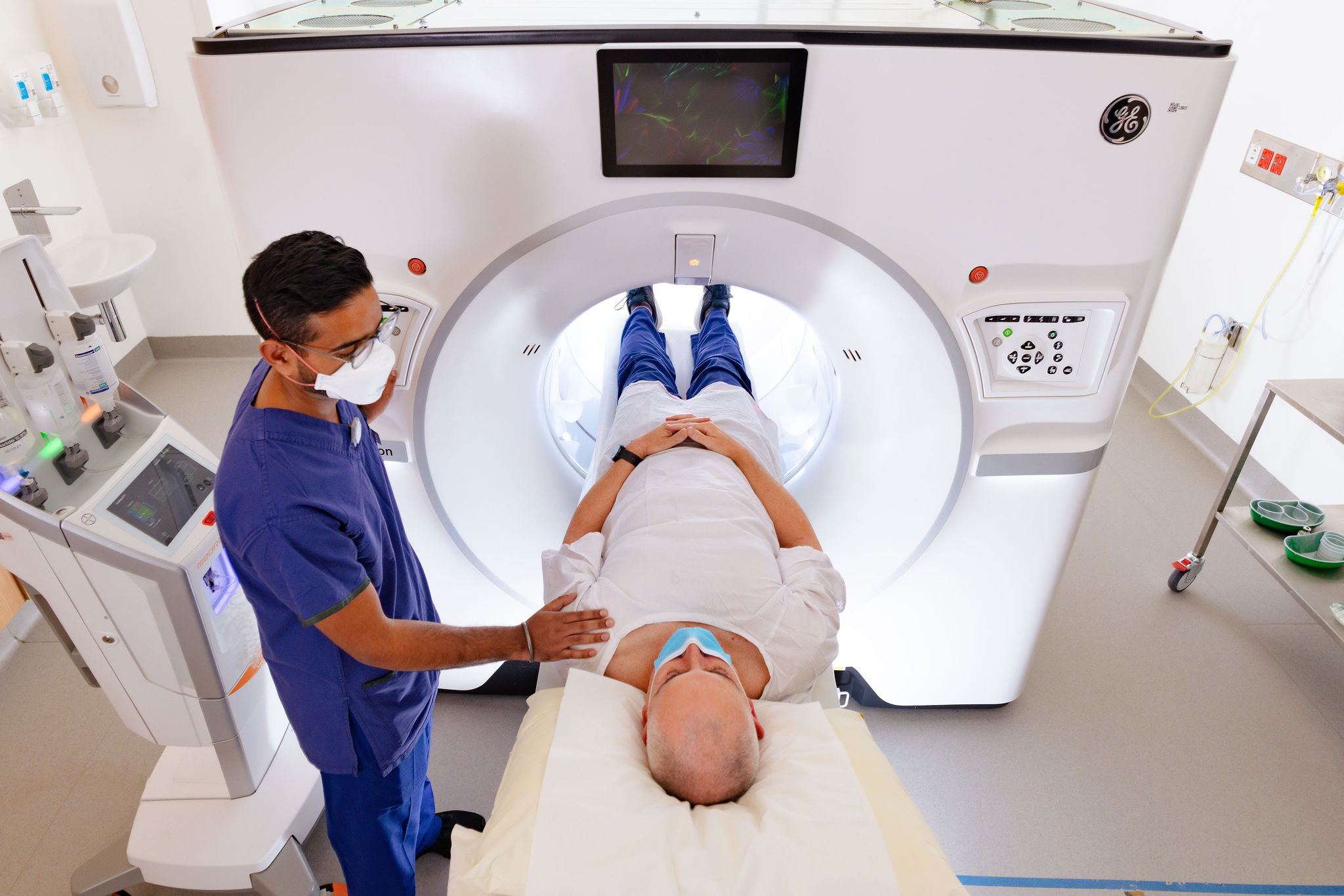 We generally inject radiotracers into the bloodstream. This lets us see where the radiotracers localise in your body. This gives us information about the function of different cells, tissues and organs. These scans help doctors diagnose a variety of conditions - including cancer. We have two innovative SPECT/CT cameras with quantitative capability. We separate this kind of imaging into two categories: Nuclear medicine, and Positron emission tomography (PET). We usually use both types with a computed tomography (CT) scan. This helps us localise the site of radiotracer accumulation. This then helps doctors select and plan the best treatment for you. The nuclear medicine department also specialises in radionuclide therapy. This treats a variety of cancers.